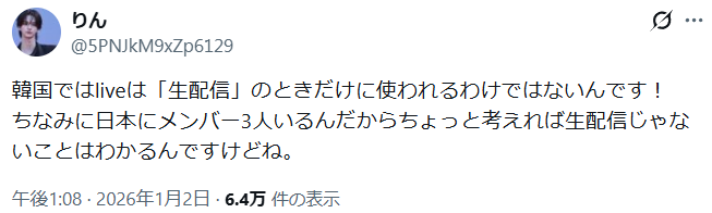 しかしながら、Xでは「韓国のLIVEは生放送ではない」という声も見られます。