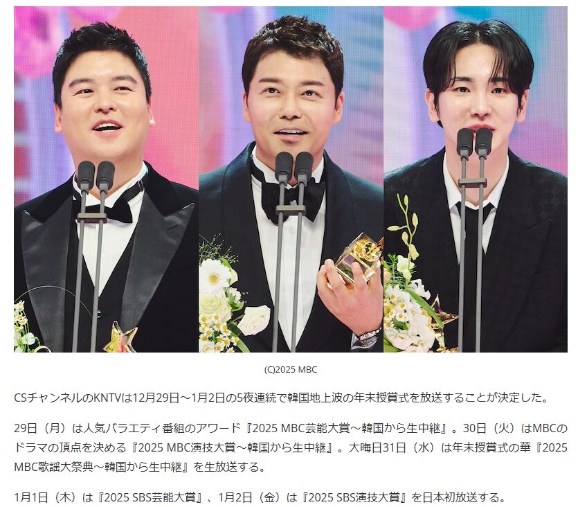 問題となっている韓国の年越し歌番組 「2025 MBC歌謡大祭典〜韓国から生中継」。
