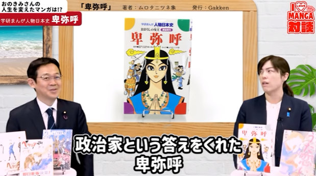 小野田紀美さんが、2023年に出演した自民党のYoutubeで「好きな本」として最初に上げていたのが、学研の学習漫画「卑弥呼」です。