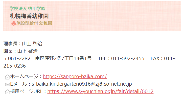 しかし札幌梅香幼稚園のHPによりますと、2004年の時点ですでに札幌梅香幼稚園の園長を務めていたようです。